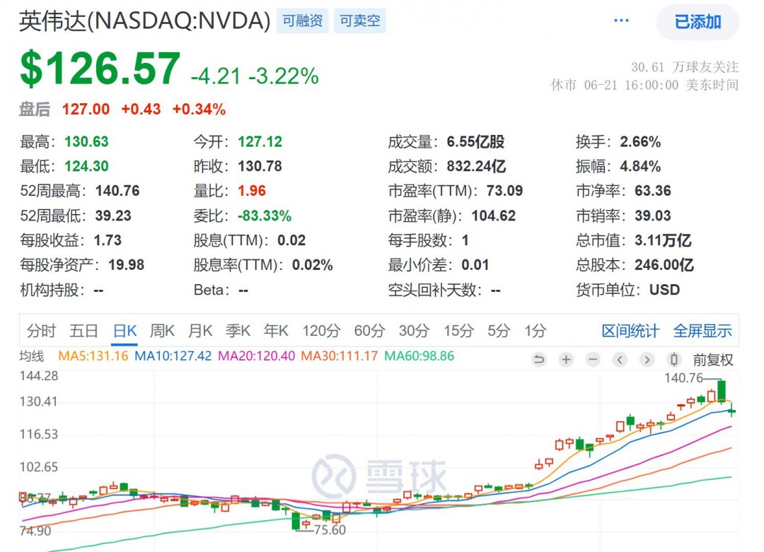 【TechWeb】6月23日消息,成为全球市值最高上市企业的英伟达,很快就走下“神坛”了。