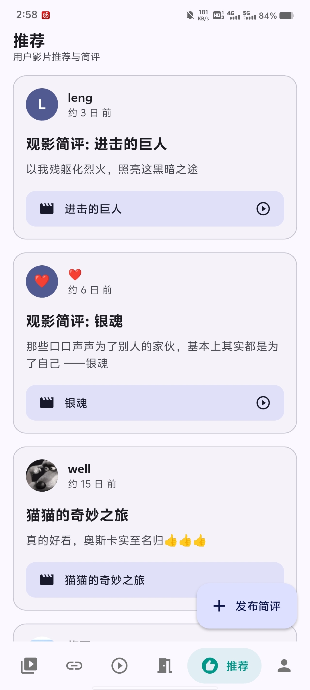 ✨用户影评:用户推荐影片并发表影评,分享观影感受