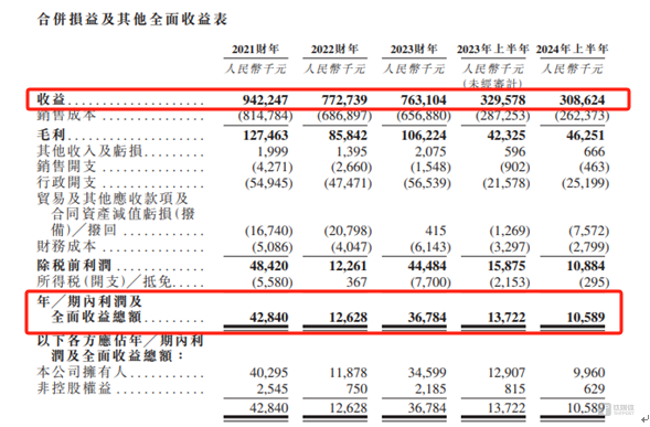 2021财年-2023财年以及2024年上半年(以下简称“报告期”)的财务表现,却令人堪忧。报告期,粤源建设分别实现营业收入94224.7万元、77273.9万元、76310.4万元、30862.4万元,年内利润分别为4284万元、1262.8万元、3678.4万元、1058.9万元,营收持续下滑,利润波动较大,特别是2022财年,粤源建设的年内利润同比下滑了70.52%。也就是说,粤源建设还未上市,业绩就已变脸。