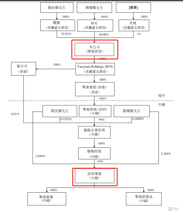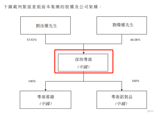 钛媒体APP注意到,在粤源建设提交港股IPO申请前,公司进行了一次重组。据悉,重组发生前,粤源建设的股权架构如下: