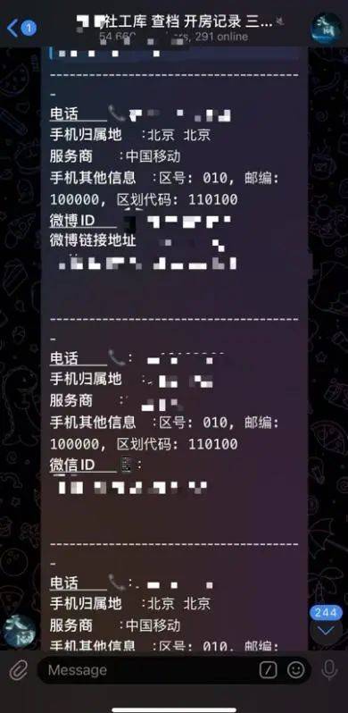 (社工库群聊和频道提供多种个人信息的查询)