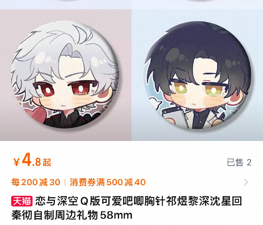 而放在近3年后,在二手交易平台,“这个小孩最贵时标价3000+元,现在为2000元左右。”卡皮补充,“早期地推活动的免费小卡,也可能炒到100-200元”。从《恋与深空》入坑的小鱼回忆,她原本以原价18元购买的祁煜生日吧唧,时隔一年,最高层被炒至百元左右。