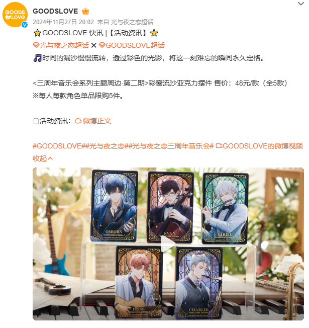 有的零售品牌独代IP GOODSLOVE是《光与夜之恋》的官方合作店铺