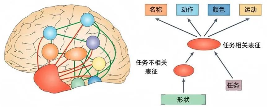 而表征性理论则认为,左右前颞叶在语义处理上有本质区别。通过对语义性痴呆(SD)患者的研究,研究者们发现左侧颞叶萎缩会导致语言词汇丧失,而右侧颞叶萎缩则会引起图像、听觉或视觉认知障碍。这表明左右颞叶分别处理不同类型的语义信息:左侧主要负责语言,右侧则处理非语言(如视觉和声音)[6]。尽管如此,左右ATL并非完全独立,而是通过相互连接协同工作,共同参与多感官的语义处理。