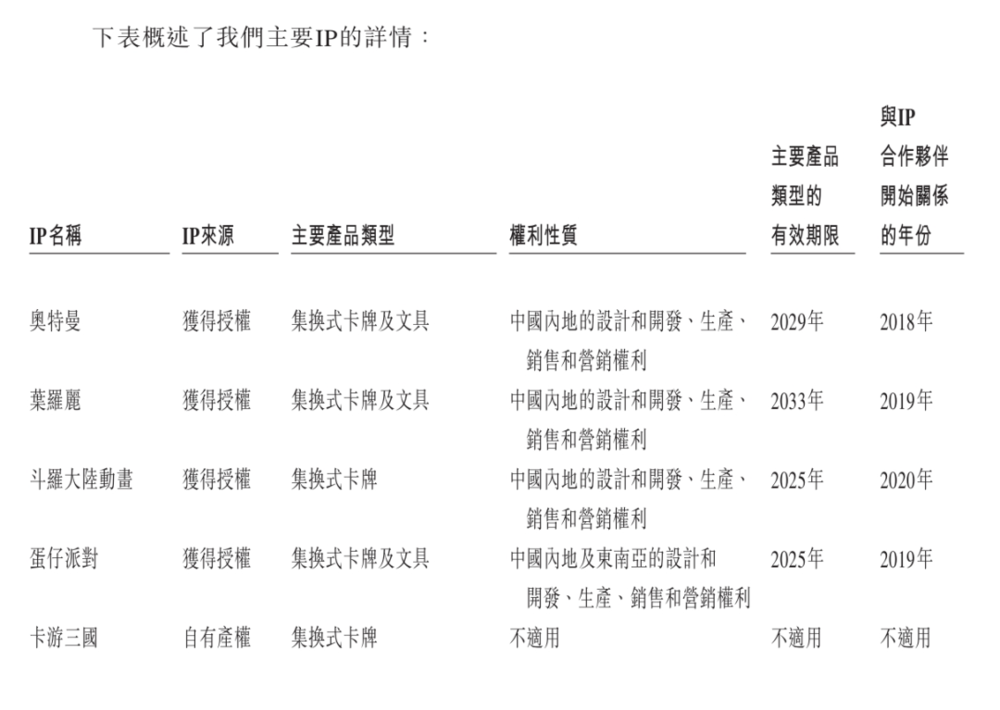 三是迄今卡游爆款产品均依赖授权IP,而非自创IP,因此IP授权到期的问题备受关注,例如,奥特曼IP的有效期限到2029年为止,蛋仔派对授权今年就到期。