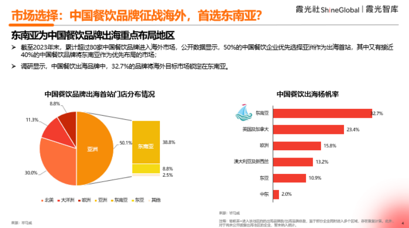 霞光智库刘晨宇:今天的话题是东南亚茶饮破局之道,主要面向已经或准备出海东南亚的茶饮人。为什么会聚焦到东南亚?我们之前做东南亚餐饮研究的时候发现,东南亚作为全球华人占比最高的海外市场,饮食文化和口味偏好与国内趋同性相对较高,外加东南亚与中国地理位置接近,因此是中国餐饮品牌出海的利基市场。