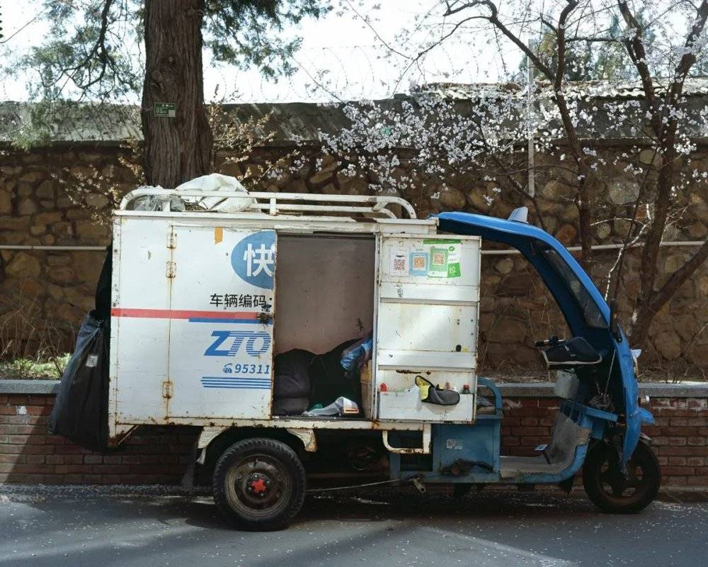我曾跟一个快递小哥送过快递,从工厂到小区,一路挤在狭小的副驾。这个位置属于他的妻子。有空的时候,他的妻子便会从安徽赶到南京看望他,每天下午坐在车上,陪他拉着几百件快递,奔向一个一个地图上的坐标。