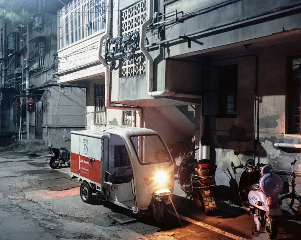 牛童开始拿起相机,记录“快递”背后的人——分拣员、快递员,送包裹的小三轮,他们的双手、酸痛的身体,止痛药膏,他们栖身在某个双层床上的铺位……