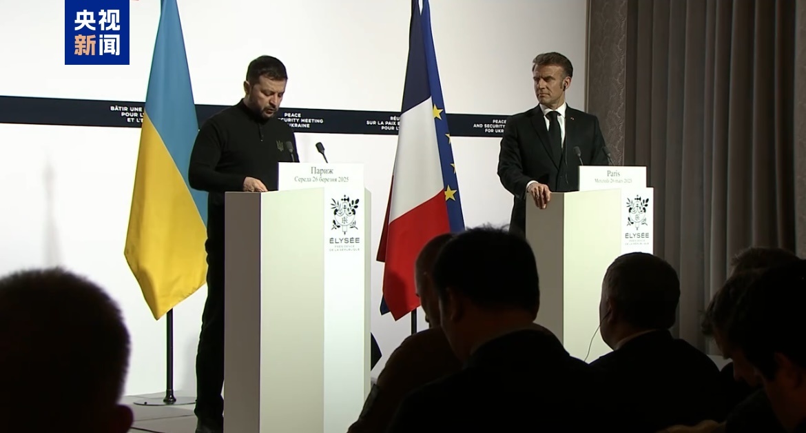 据央视新闻,当地时间3月26日,法国总统马克龙与乌克兰总统泽连斯基在爱丽舍宫会面后召开联合新闻发布会。