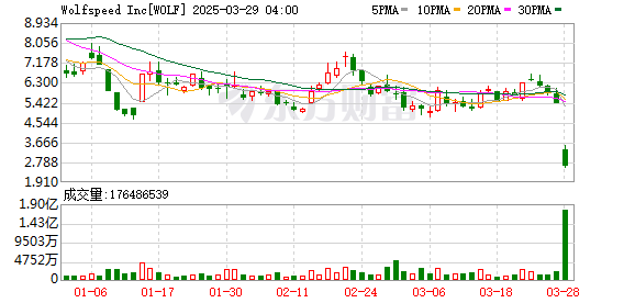 周五(3月28日)美股早盘,美国芯片股Wolfspeed股价腰斩,触及近27年来的最低水平。
