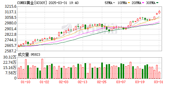 3月31日,伦敦现货黄金价格延续牛市走势,盘中突破3100美元/盎司,再次刷新历史新高。