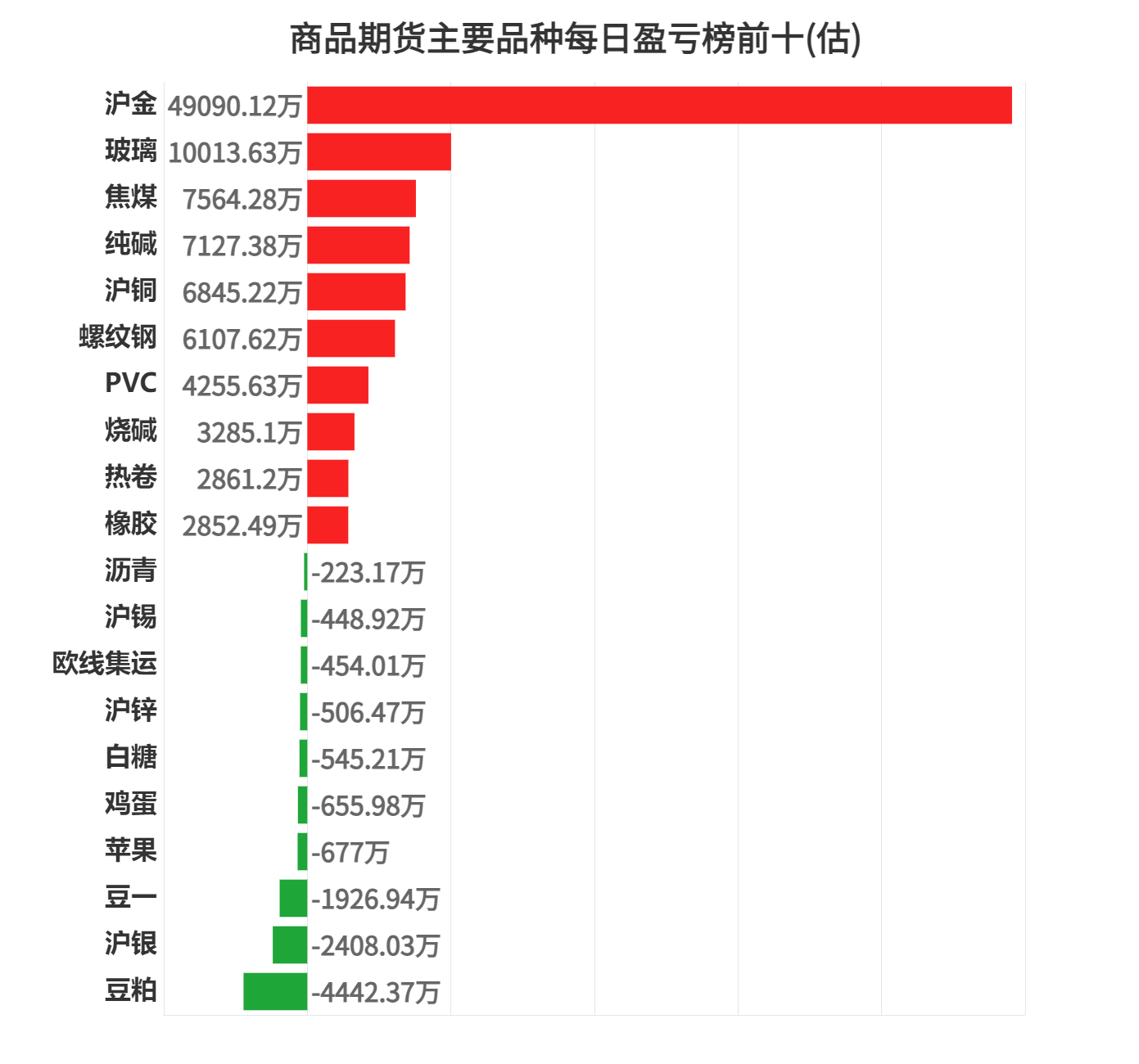 豆粕亏损第一,为4442.37万元。