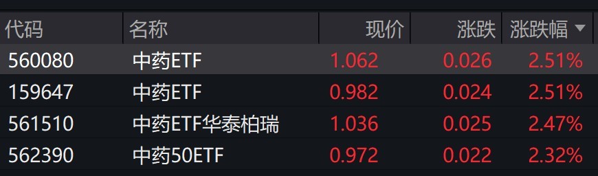 Home股票中药概念股走强,中药ETF涨超2% 股票 2025 年 4 月 1 日 中药概念股走强,中药ETF涨超2% By 每日经济新闻 - Advertisement - 每经记者 叶峰 每经编辑 肖芮冬 中药概念股走强,华润三九、以岭药业、佐力药业涨超3%,吉林敖东、天士力涨超2%。 受盘面影响,跟踪中证中药指数的ETF涨超2%。 中证中药指数选取涉及中药生产与销售等业务的上市公司证券作为样本,以反映中药概念类上市公司的整体表现。 有券商表示,消费复苏之下,看好宏观经济回暖及内需刺激带来的消费类中药销量的恢复。人口老龄化和居民健康意识提升为消费类中药带来最大的长期驱动力,中药行业长产业链以及“防—治—养”的特点有望得到更为充分的体现。 文章转载自 每经网 - Advertisement - Must Read 期货 “抢石油大赚一笔”!特朗普再提打开霍尔木兹海峡 伊朗警告:将摧毁美以中东所有资产 古方信息网 - 2026 年 4 月 4 日 - Advertisement - 24小时 机构调研丨光刻胶+半导体+国产芯片 这家公司多款核心产品已批量供货 先进封装业务实现跨越式提升 2026 年 4 月 4 日 基金 聚焦自由现金流ETF华夏(159201)、中证500现金流ETF华夏(560120)4月配置窗口 2026 年 4 月 4 日 股票 隆鑫通用1元“甩卖”子公司后续:7031万元财务资助逾期,公司称去年已全额计提减值准备 2026 年 4 月 4 日 Related News 期货 “抢石油大赚一笔”!特朗普再提打开霍尔木兹海峡 伊朗警告:将摧毁美以中东所有资产 2026 年 4 月 4 日 24小时 机构调研丨光刻胶+半导体+国产芯片 这家公司多款核心产品已批量供货 先进封装业务实现跨越式提升 2026 年 4 月 4 日 基金 聚焦自由现金流ETF华夏(159201)、中证500现金流ETF华夏(560120)4月配置窗口 2026 年 4 月 4 日 股票 隆鑫通用1元“甩卖”子公司后续:7031万元财务资助逾期,公司称去年已全额计提减值准备 2026 年 4 月 4 日 世界 重大利好突袭!伊朗总统最新发声!特朗普称将在“两到三周”内结束伊朗战事 2026 年 4 月 4 日 - Advertisement -