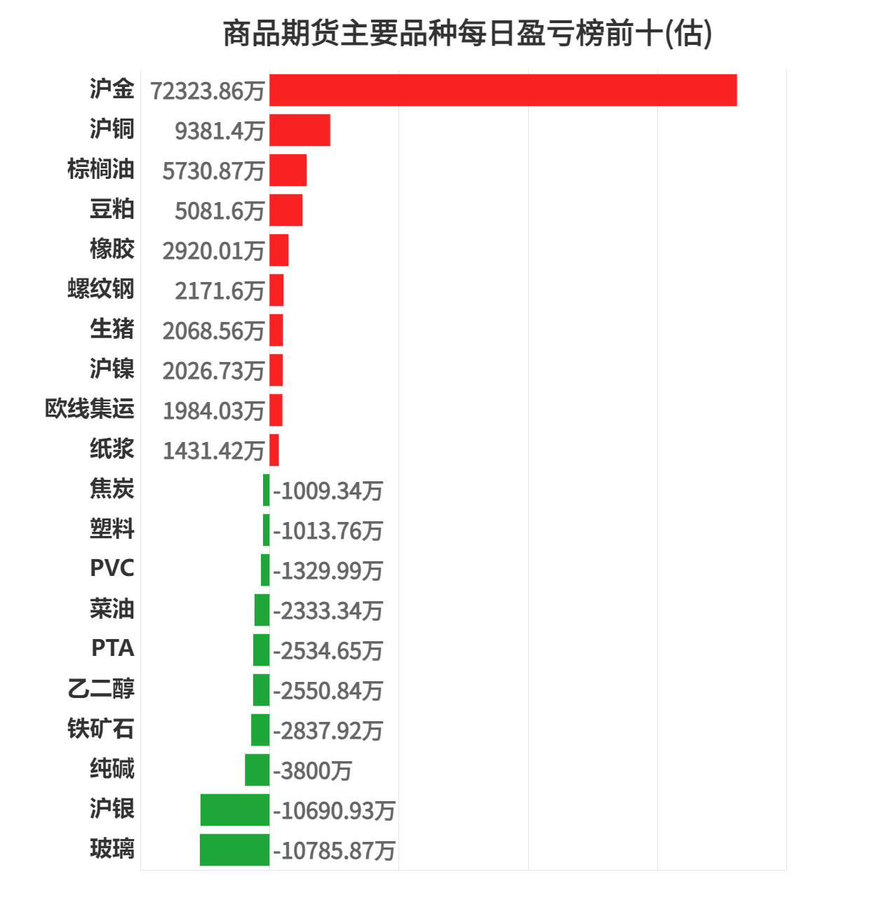 今日商品期货上榜机构席位中沪金盈利第一,为72323.86万元。