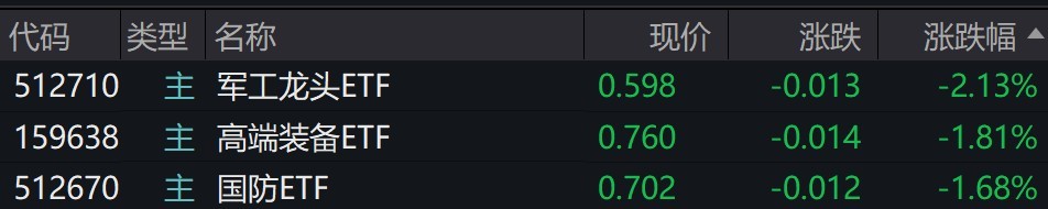 Home股票军工股早盘走弱,军工龙头ETF跌逾2%,高端装备ETF跌约1.8% 股票 2025 年 4 月 2 日 军工股早盘走弱,军工龙头ETF跌逾2%,高端装备ETF跌约1.8% By 每日经济新闻 - Advertisement - 每经记者 叶峰 每经编辑 肖芮冬 军工股早盘走弱,航发动力跌近10%,中航沈飞、中航光电、中航西飞跌超2%。 受盘面影响,军工龙头ETF跌逾2%,高端装备ETF跌约1.8%。 有券商表示,随着科技的快速发展,军工行业正面临着前所未有的变革和机遇。企业需要紧跟科技发展的步伐,积极探索新技术在军工领域的应用,推动军工产业发展。2025年的军工行情值得期待,重点关注主战装备的增量方向和新质生产力方向,行业基本面已在拐点阶段,后续军工板块beta机会不容忽视。 文章转载自 每经网 - Advertisement - Must Read 24小时 六部门:发展“人工智能+电商” 引导电商企业加强人工智能大模型等技术研发应用 古方信息网 - 2026 年 4 月 6 日 - Advertisement - 期货 国际油价直线拉升!霍尔木兹海峡大消息!特朗普最新发声 2026 年 4 月 6 日 股票 特朗普暗示“最后期限”推迟1天;伊朗最高领袖发声;原油涨超3%,金银下挫;张雪机车打假;胖东来再回应“鸡蛋被检出角黄素”丨每经早参 2026 年 4 月 6 日 贵金属 博弈升级:黄金跌破4800,技术面指向4370-5000区间决战 2026 年 4 月 6 日 Related News 24小时 六部门:发展“人工智能+电商” 引导电商企业加强人工智能大模型等技术研发应用 2026 年 4 月 6 日 期货 国际油价直线拉升!霍尔木兹海峡大消息!特朗普最新发声 2026 年 4 月 6 日 股票 特朗普暗示“最后期限”推迟1天;伊朗最高领袖发声;原油涨超3%,金银下挫;张雪机车打假;胖东来再回应“鸡蛋被检出角黄素”丨每经早参 2026 年 4 月 6 日 贵金属 博弈升级:黄金跌破4800,技术面指向4370-5000区间决战 2026 年 4 月 6 日 24小时 日韩股市高开 芯片股集体拉升 三星电子涨近4% 2026 年 4 月 6 日 - Advertisement -