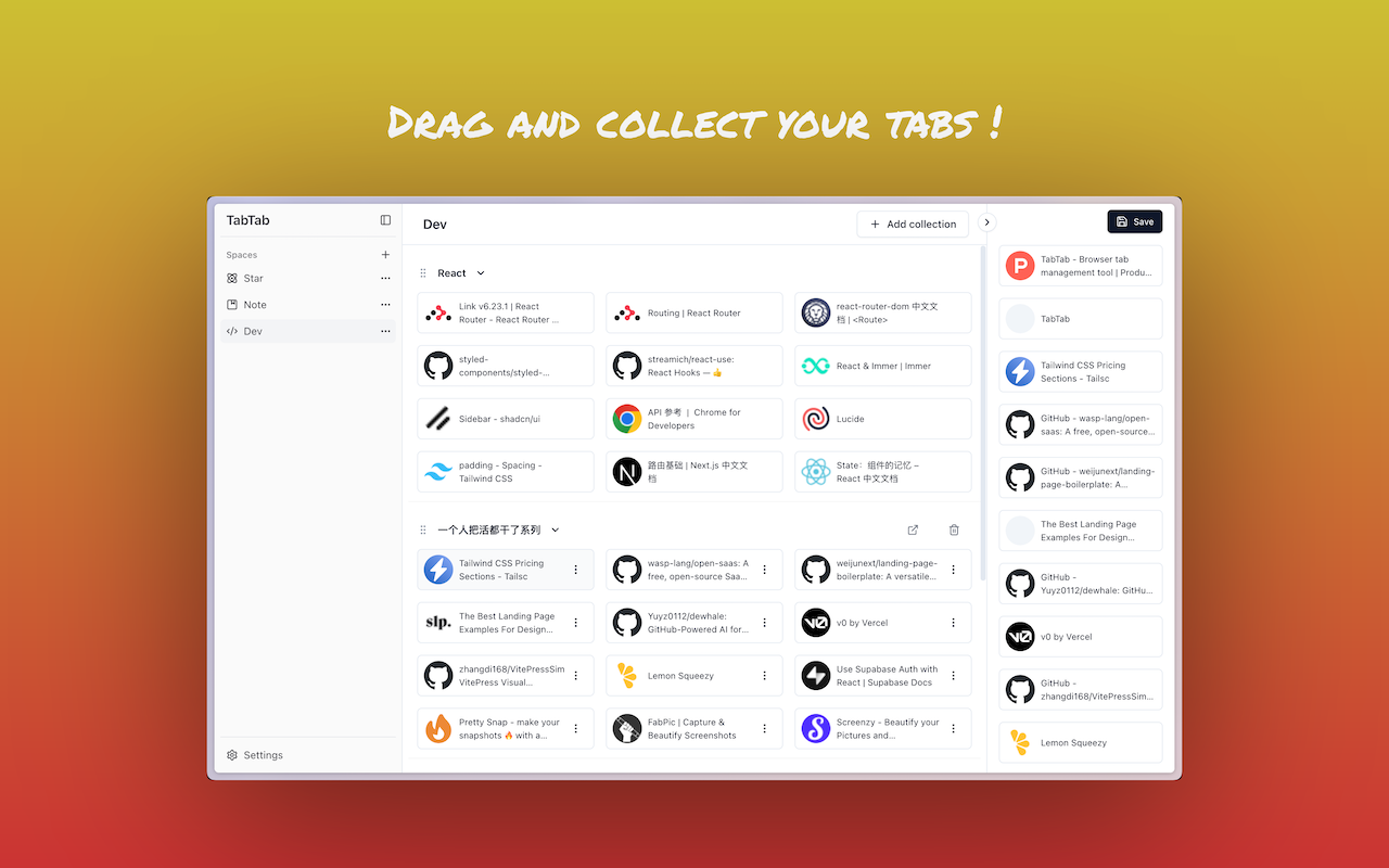 - 一键收纳/恢复标签页组, 让你处理工作, 高效迅速.