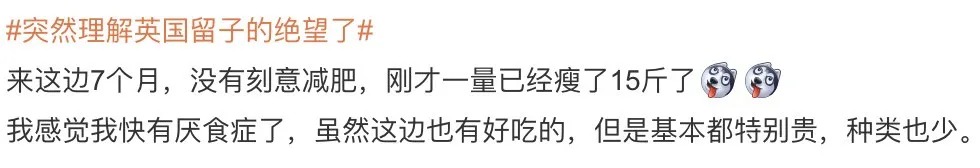 而这种贫瘠的饮食结构,和好不美丽的精神状态,正是英国留子的生存现状。