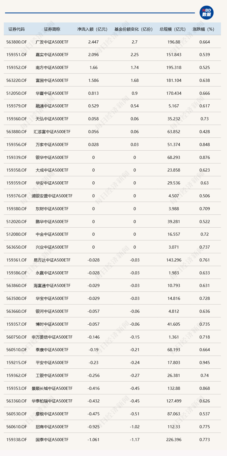 此外,当天场内32只中证A500ETF合计净流入4.91亿元。