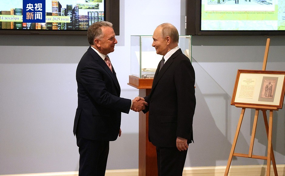 本次会晤场所选在圣彼得堡总统图书馆的《旅行者眼中的俄罗斯》主题书展现场。该展览特别展出了有关历史外交访问在内的文献档案。