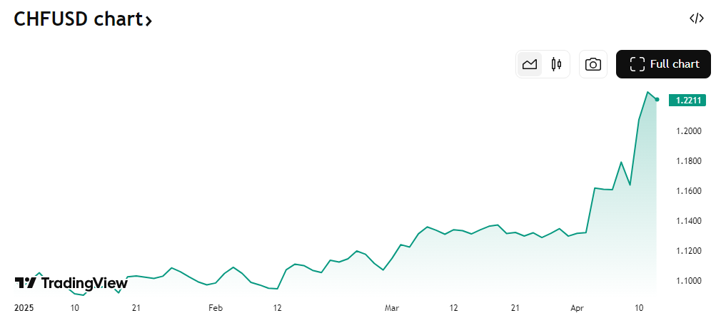 瑞郎兑美元年内已累计升值超10% 图片来源:TradingView
