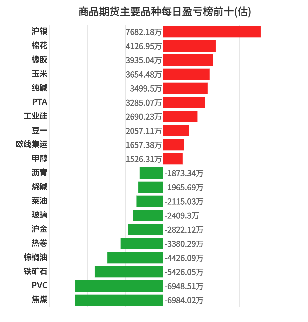 今日商品期货上榜机构席位中沪银盈利第一,为7682.18万元。
