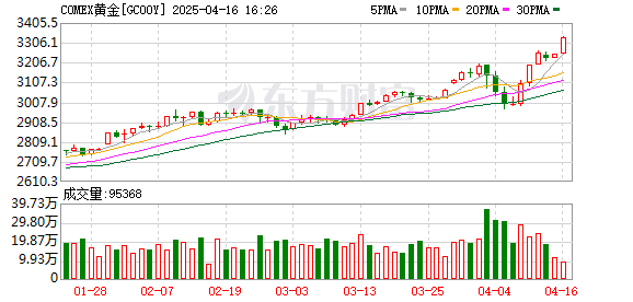 4月16日,COMEX黄金升破3300美元/盎司,续刷历史新高。