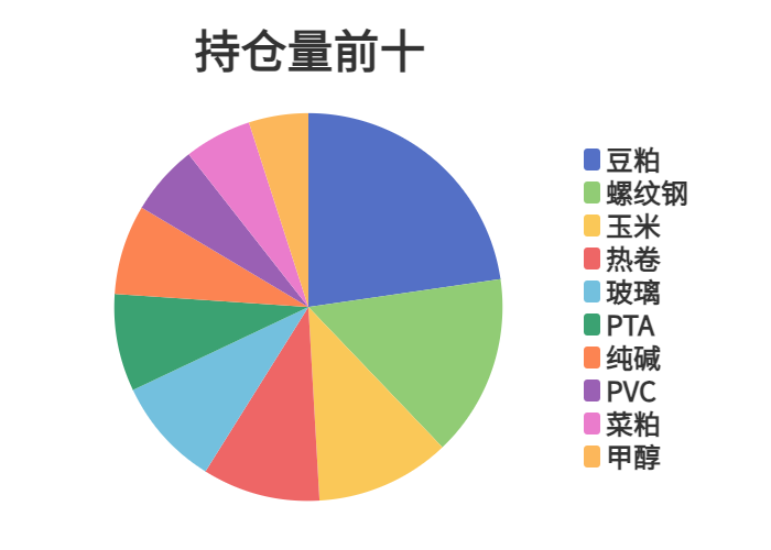 市场成交量前十和持仓量前十如下图所示:
