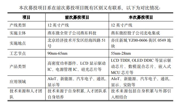 本次募投项目主要覆盖55nm-28nm制程,在原有AIoT、新能源、汽车电子、通讯、显示等应用领域内新增了结构更复杂、性能更高、功耗更低的OLED(有机发光二极管)显示驱动芯片、数模混合芯片、嵌入式MCU(微控制器)芯片等产品,还可以拓展到对于芯片性能要求较高的安防领域。