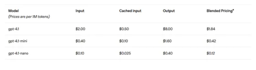 价格方面,GPT-4.1系列在性能提升的同时,价格更具竞争力。GPT-4.1相比GPT-4o价格降低26%,而GPT-4.1 Nano作为最小、最快且最便宜的模型,每百万token的成本仅为12美分。