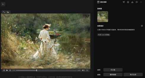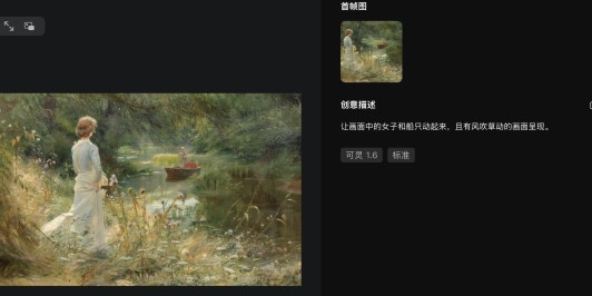 同时,记者也测试了可灵2.0大师版图生视频的功能。记者先是上传一幅油画图片,并描述画面转动态的要求后,其生成后的效果也与1.6模型生成后的效果有着较明显差距。