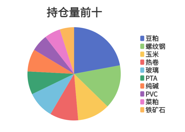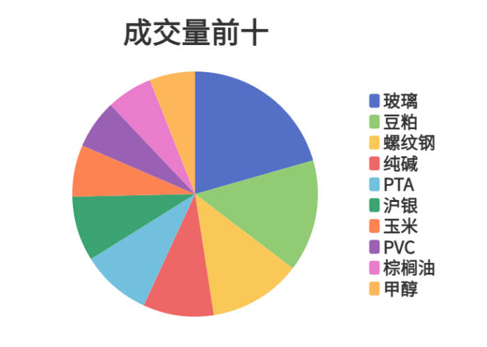 市场成交量前十和持仓量前十如下图所示: