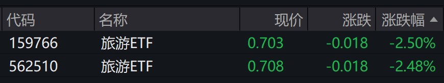 受盘面影响,跟踪中证旅游主题指数的旅游ETF跌超2%。