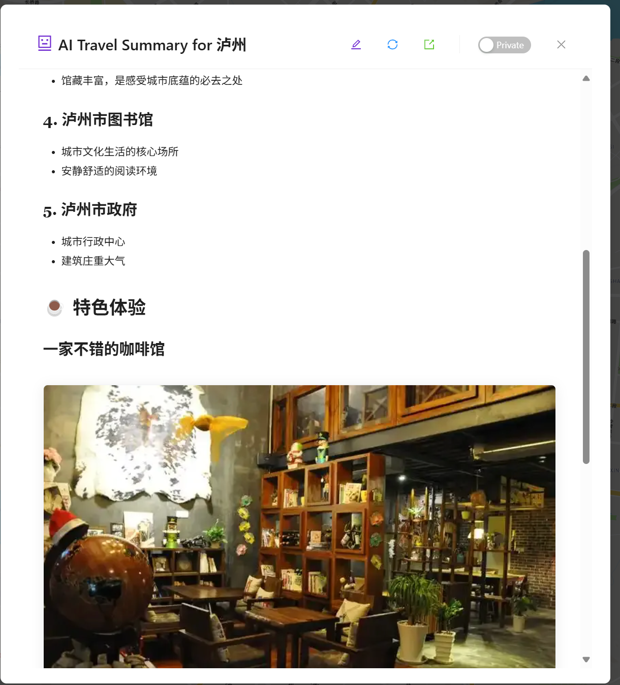 当添加了地点和线路以后,可以使用 AI 来生成旅行的日志,提示词可以在用户设置界面配置