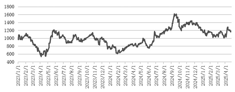 图为短纤加工费(单位:元/吨)