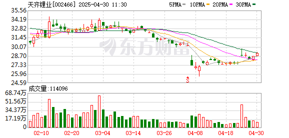 天齐锂业今日晚间发布2025年第一季度报告,实现营业收入25.84亿元,同比下降0.02%,归属于上市公司股东的净利润为1.04亿元,同比扭亏为盈,去年同期,天齐锂业亏损38.97亿元。