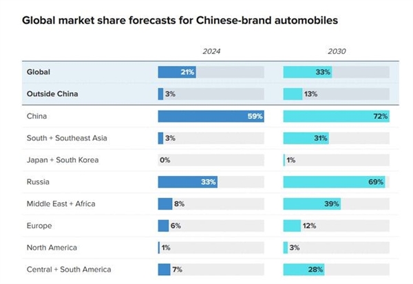 此外,在中南美洲、东南亚、中东和非洲等主要地区,中国汽车制造商的市场份额预计将显著增长。