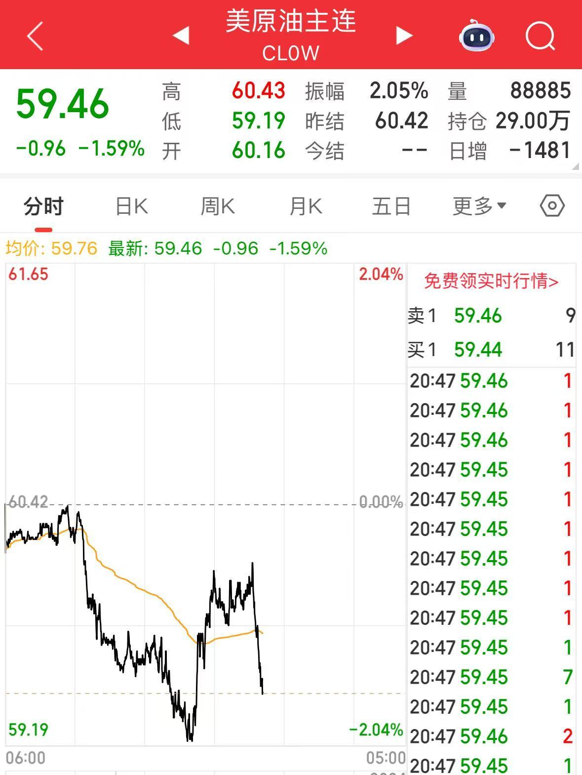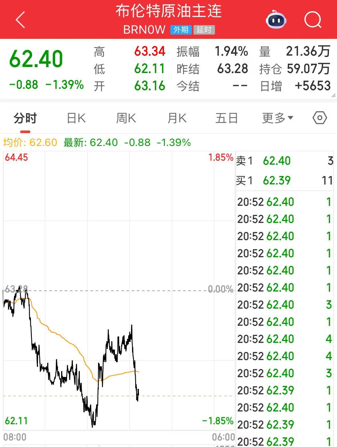 国际原油价格跳水,布油、美油跌超1%。