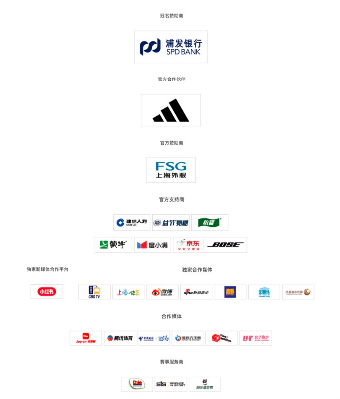 赞助商们合作的方式多种多样。比如,在今年的上海半程马拉松中,有冠名赞助商、官方合作伙伴、官方赞助商、官方支持商以及赛事服务商5种类型。不同层级的赞助标准也相同。