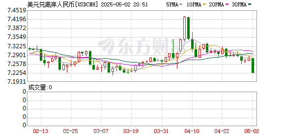 离岸人民币兑美元大涨逾500点,日内涨超0.7%,报7.226。