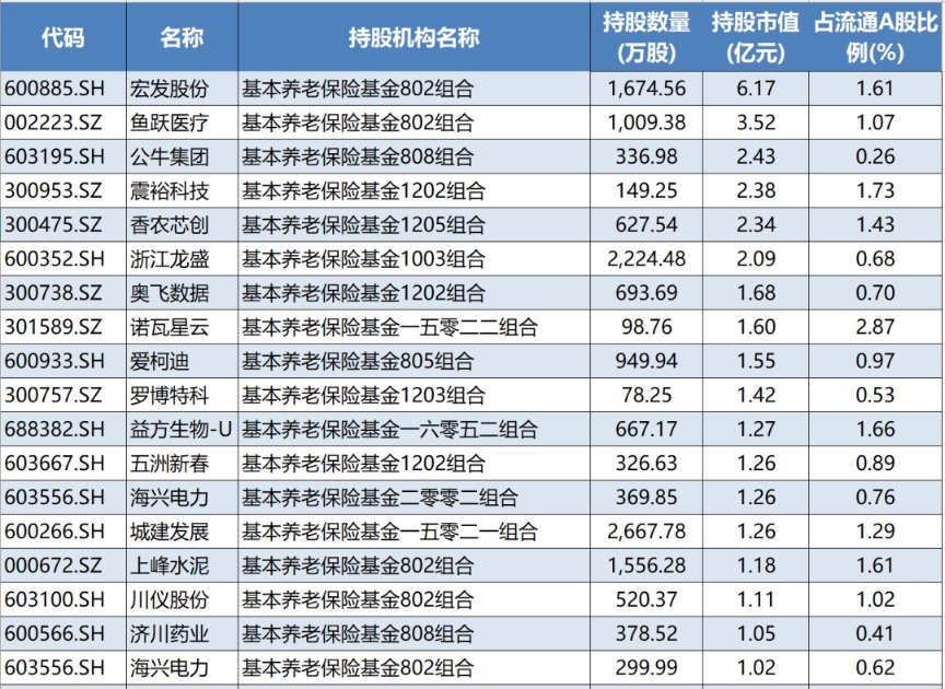 此外,公牛集团、震裕科技、香农芯创等多家公司也颇受养老金青睐。