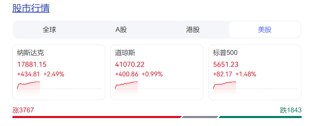 当地时间5月1日,美股三大股指集体高开。截至发稿,道指涨0.99%,标普500指数涨1.48%,纳指涨2.49%。