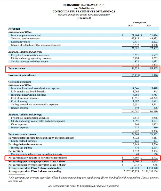 尽管如此,由于巴菲特所持的公开上市公司股票组合在年初遭受打击,公司整体净利润同比下跌近64%。不过,伯克希尔一贯提醒投资者不要过度关注这些季度性的波动。