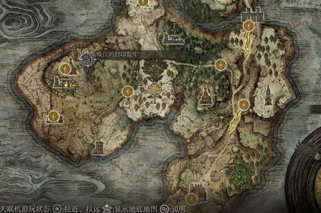在地图方面,《艾尔登法环》没有学《荒野之息》的等高线地图,而是采取了手绘风格这一在开放世界新颖少见的设计,并在地图上为玩家的前进方向做出了指引。