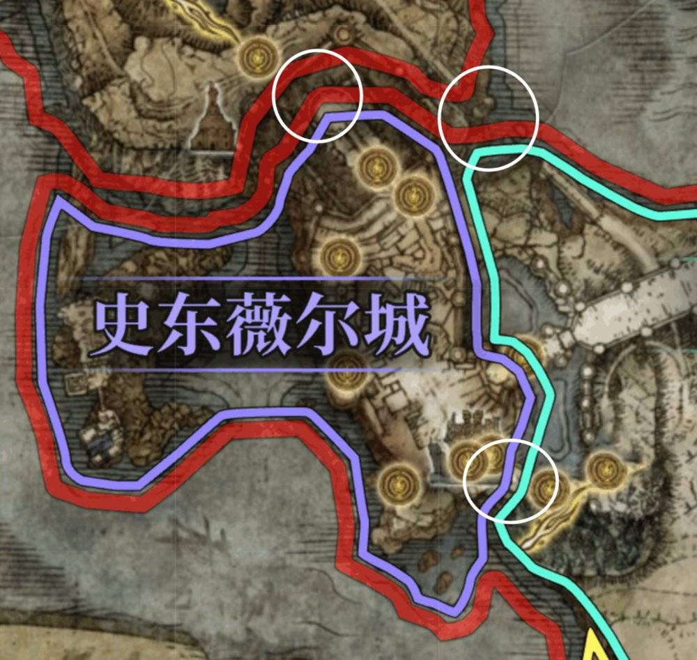 著名的史东薇尔城,扮演着“连接宁姆格福和湖之利耶尼亚两个区域的关卡”作用,下图的白圈处就是关卡。
