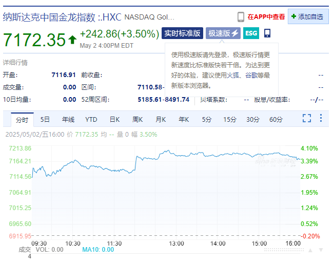热门中概股多数上涨,纳斯达克中国金龙指数涨3.5%。