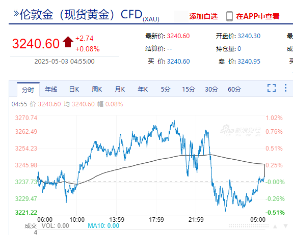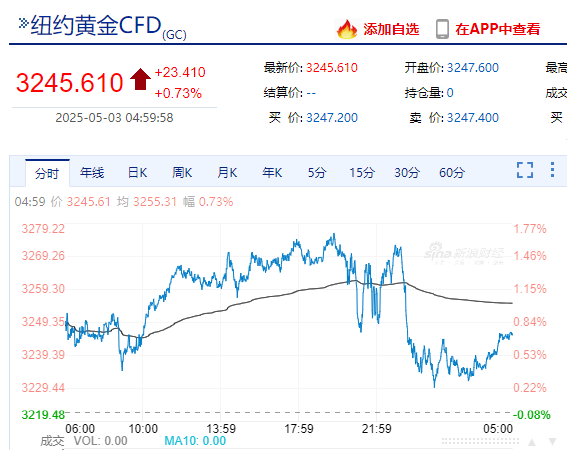 现货黄金、纽约黄金收涨。