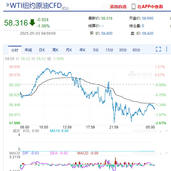 国际原油跌超1%。