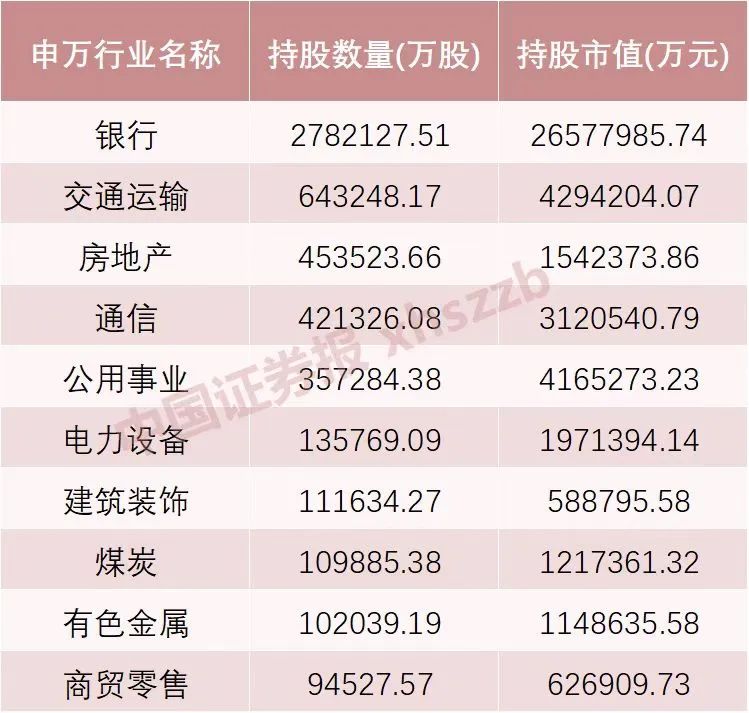 险资持股数量靠前的十大行业