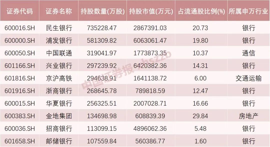 险资前十大重仓股
