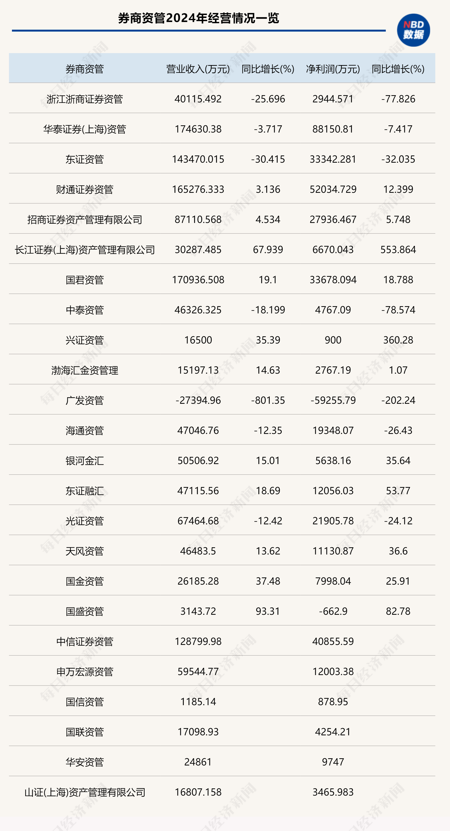 2024年,券商资管净利润超过5亿元的只有华泰资管和财通资管,分别为8.82亿元、5.2亿元。
